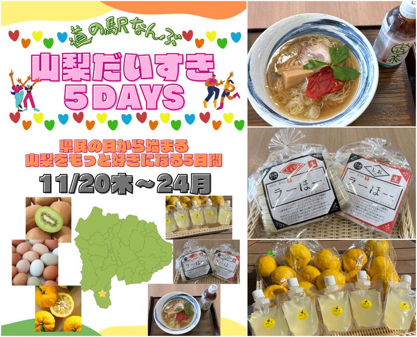 「山梨だいすき5DAYS~県民の日から始まる もっと山梨を好きになる5日間~」 \県民の日~11月3連休は「道の駅なんぶ」に行こう!/